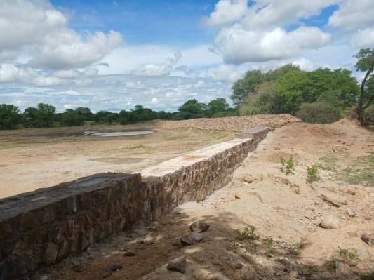 Catchment management which includes putting silt traps around the dam and upstream was also done to reduce the amount of silt that comes into the dam. As such, the removal of silt by at least 1m and raising of the dam embankment has seen the dams water holding capacity increase from 4000m3 and 13400m3 and is anticipated to hold water until the onset of another rainy season. This rehabilitation is set to benefit at least 161 households and 3700 livestock (1750 donkeys, 1050 cattle, 800 goats and 100 sheep) with direct access to water from Mamsisi Village and other nearby lines such as Mawaza, Pumula, Pelela and Nikanyoro lines. Dam scooping at Nkobotwane dam will go a long way in climate change adaptation and improving the livelihoods of the community.