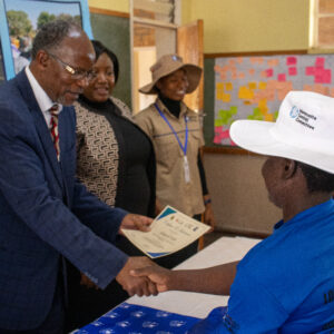BICCcZimbabwe Bishop hands certificate to participant of a GALS training in Gwanda.