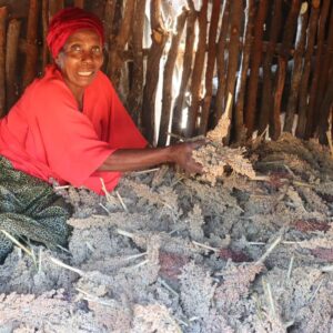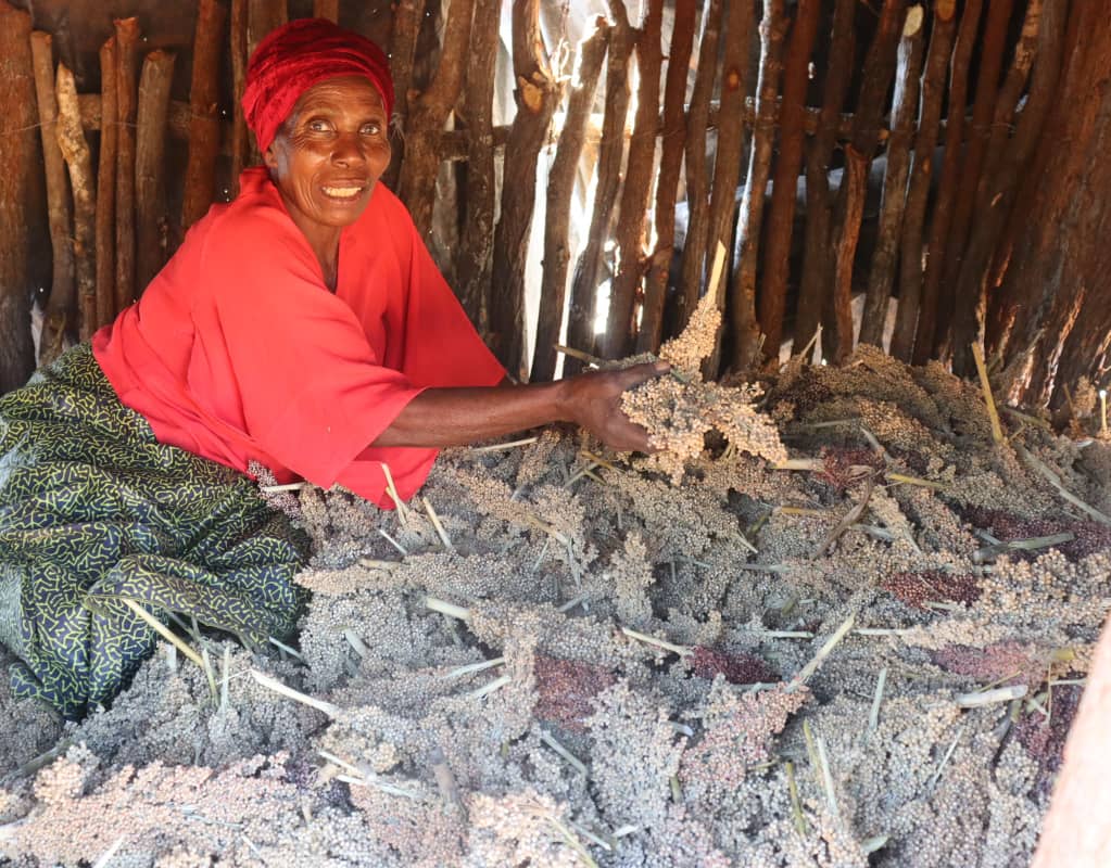 CA farmer Lindiwe Ndlovu from ward 7 showcasing her sorghum from the 2024/25 farming season