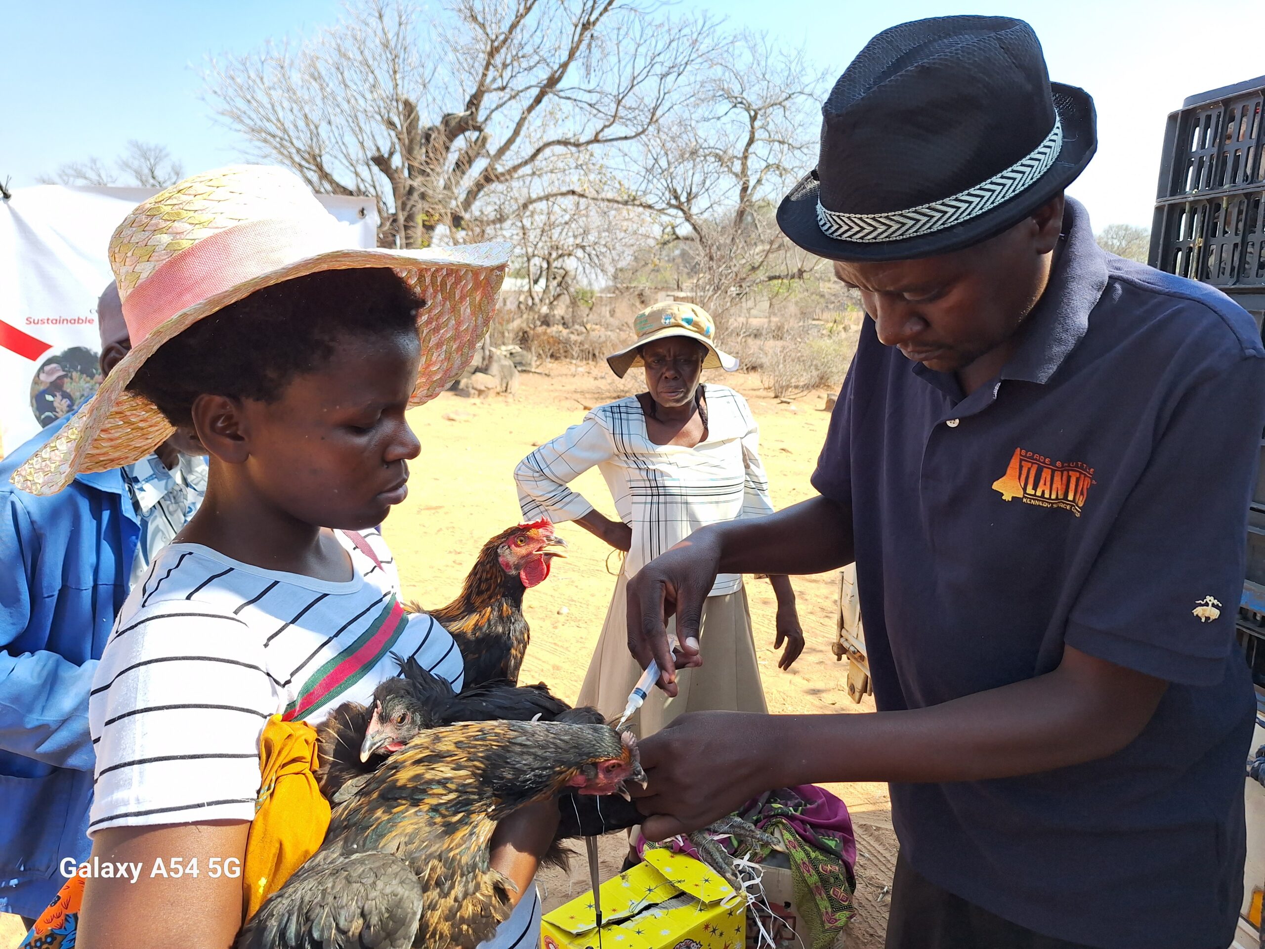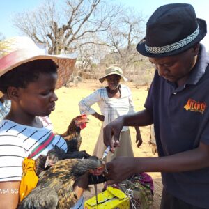 District Vet administering infectious coryza to chickens before handover to poultry farmer