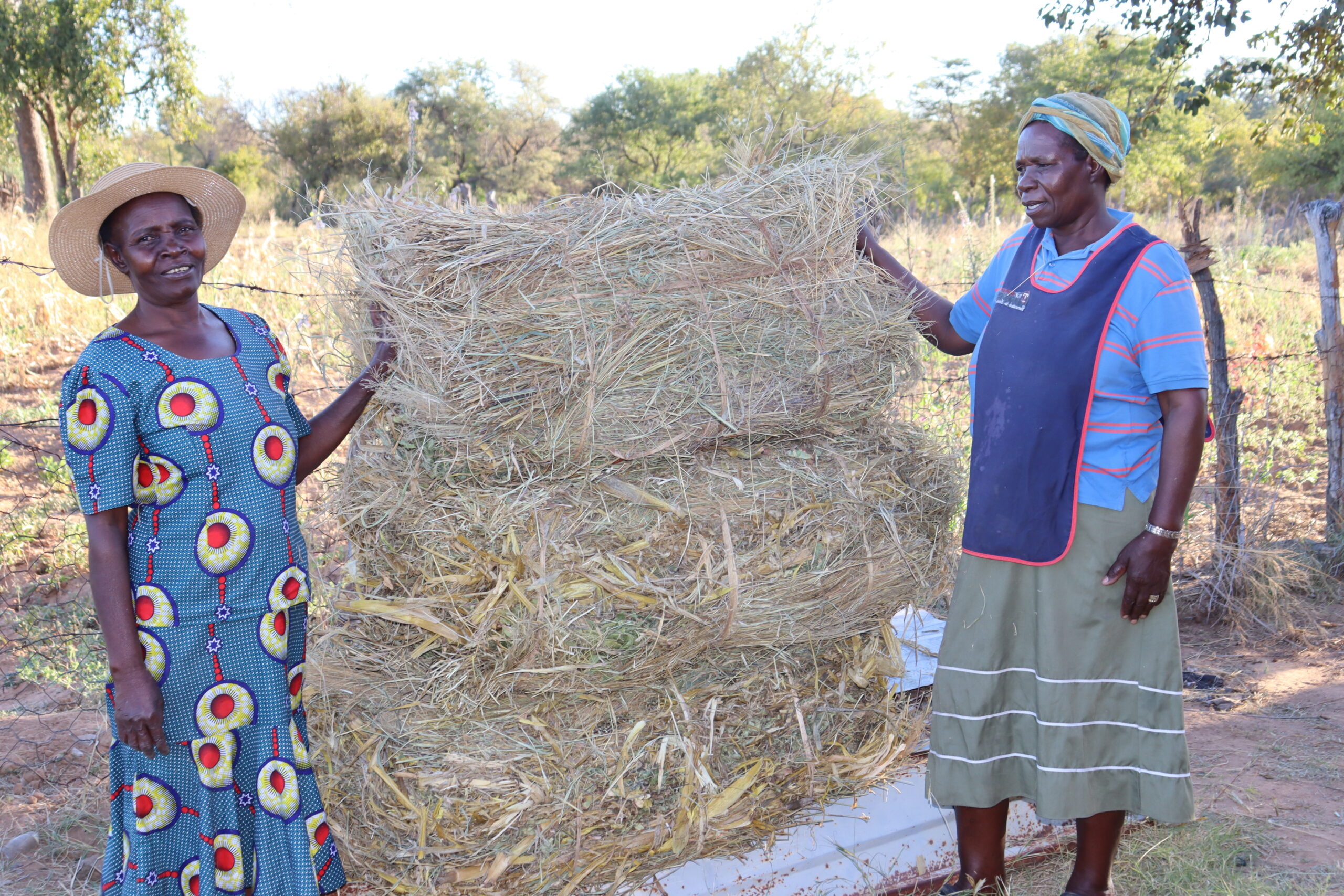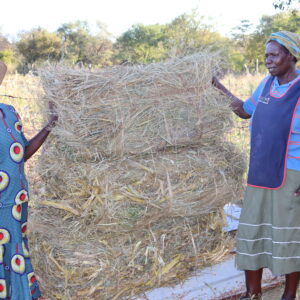Lebohang Mkhwananzi(right) from ward 6 showcasing her haybales